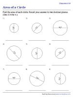 Printable math worksheets circle area
